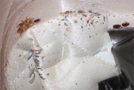 Прячутся клопы под обоями, в складках одежды, постельного белья, внутри матраца, сзади шкафов, на деревянных перекладинах дивана и кровати.